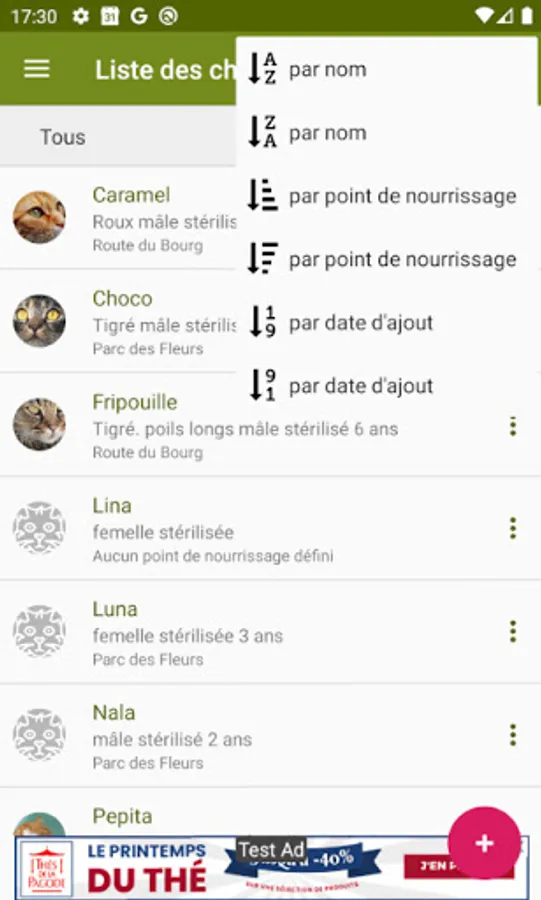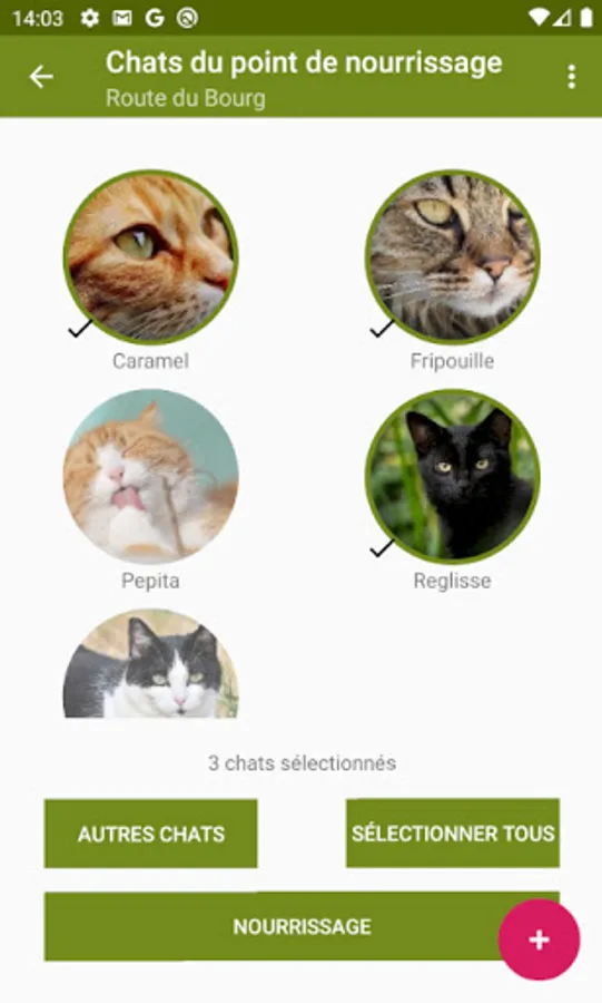 Freecats is the Swiss army knife of the free cat feeder in your pocket, with everything you need on a daily basis: list of cats, photos, presence and appetite statistics, map of feeding points, suggestions names, checklist, useful contacts, legal texts, treatment reminders ...