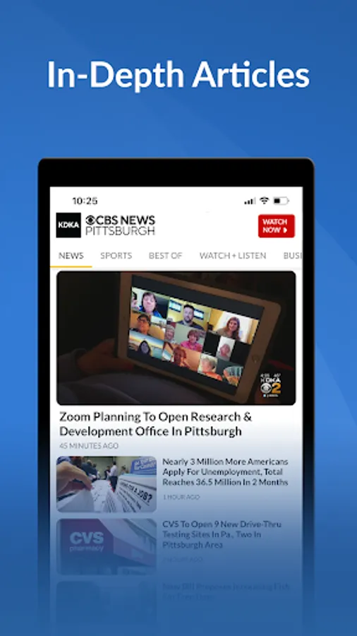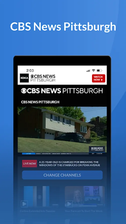The KDKA / CBS Pittsburgh app brings you the latest news, sports, weather and lifestyle content from the Pittsburgh area. In addition the CBS News Pittsburgh stream is always available.