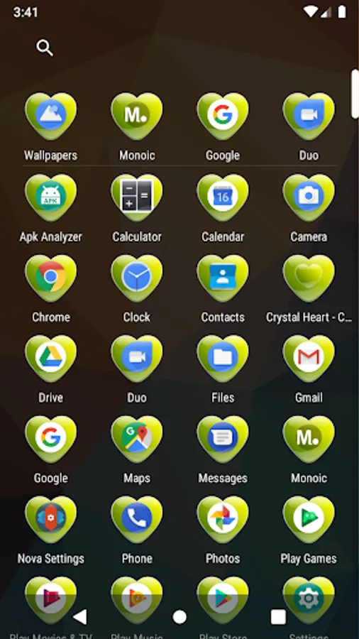 Crystal Heart icon mask is tested to work with Nova Launcher and also seems to work with Apex or ADW Launcher. Nova launcher officially supports icon masks and works flawlessly. Overall icon size can be increased beyond 100% to suit your taste and needs.