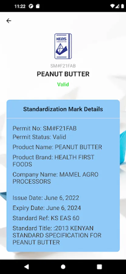 Using the app you can now be able to perform all inquiries regarding the verification of various Products permit validity status.i.e .Standardization mark,Diamond mark and Fortification Mark.