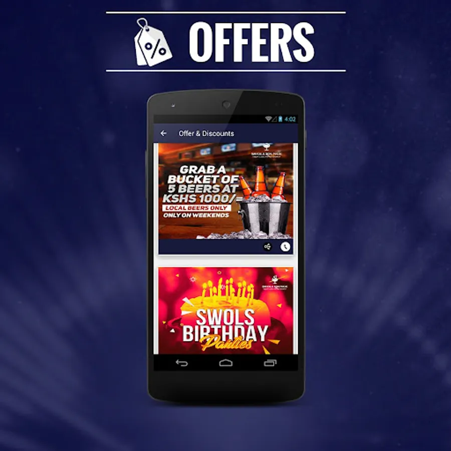 Swols App is your ultimate entertainment guide at the palm of your hand. Swols App allows users to get real time event updates, offer alerts and share daily events that go down at Swols lounge. It Provides users with prices of goods such as different beverage and also the restaurant menu. Again, it gives users the option of reserving a space at Swols Lounge. The Swols App will allow users to invite friends to Swols lounge, send feedback to the club and importantly update users with latest offers and promotions from Swols lounge, thus allowing people get the best from Swols