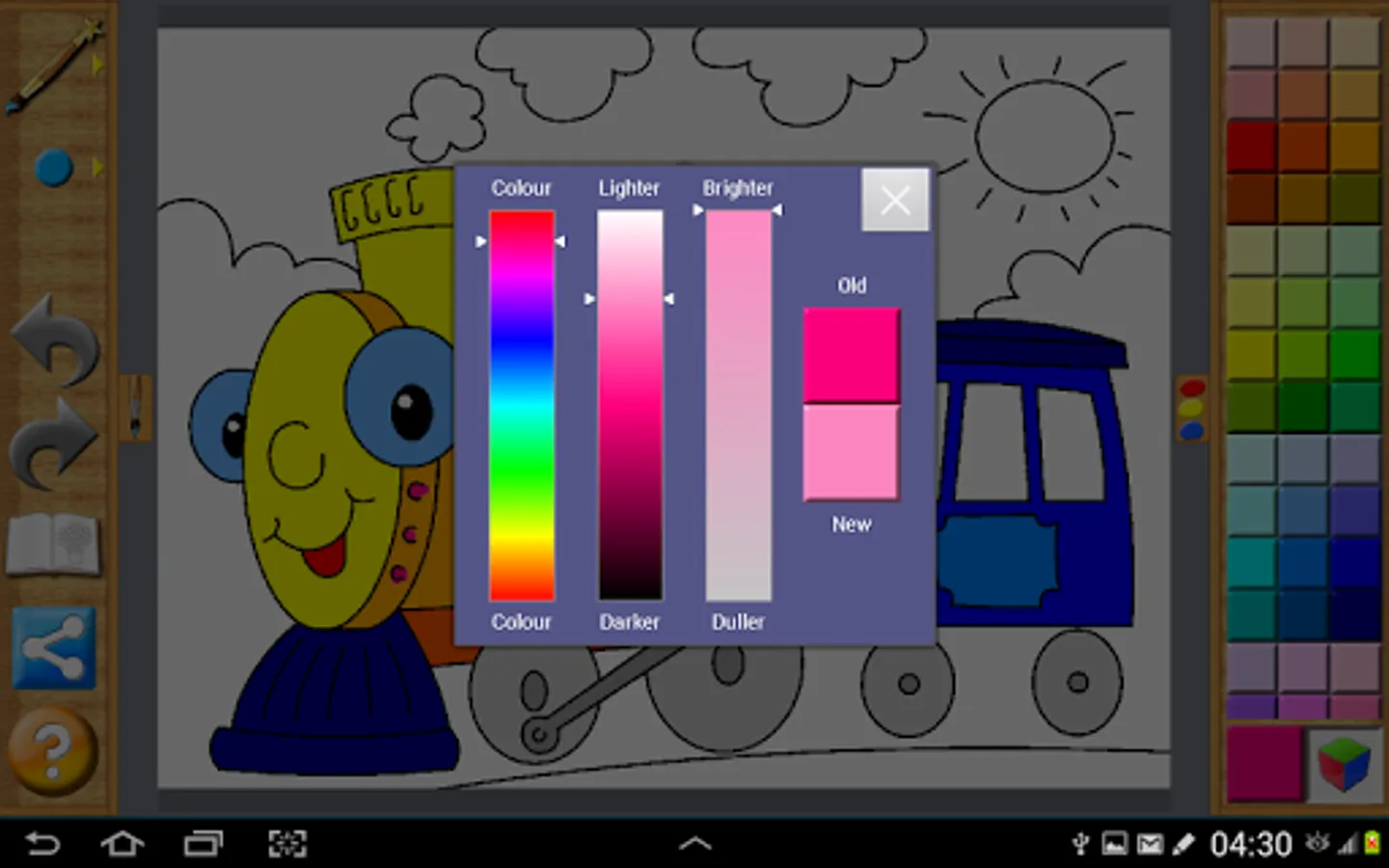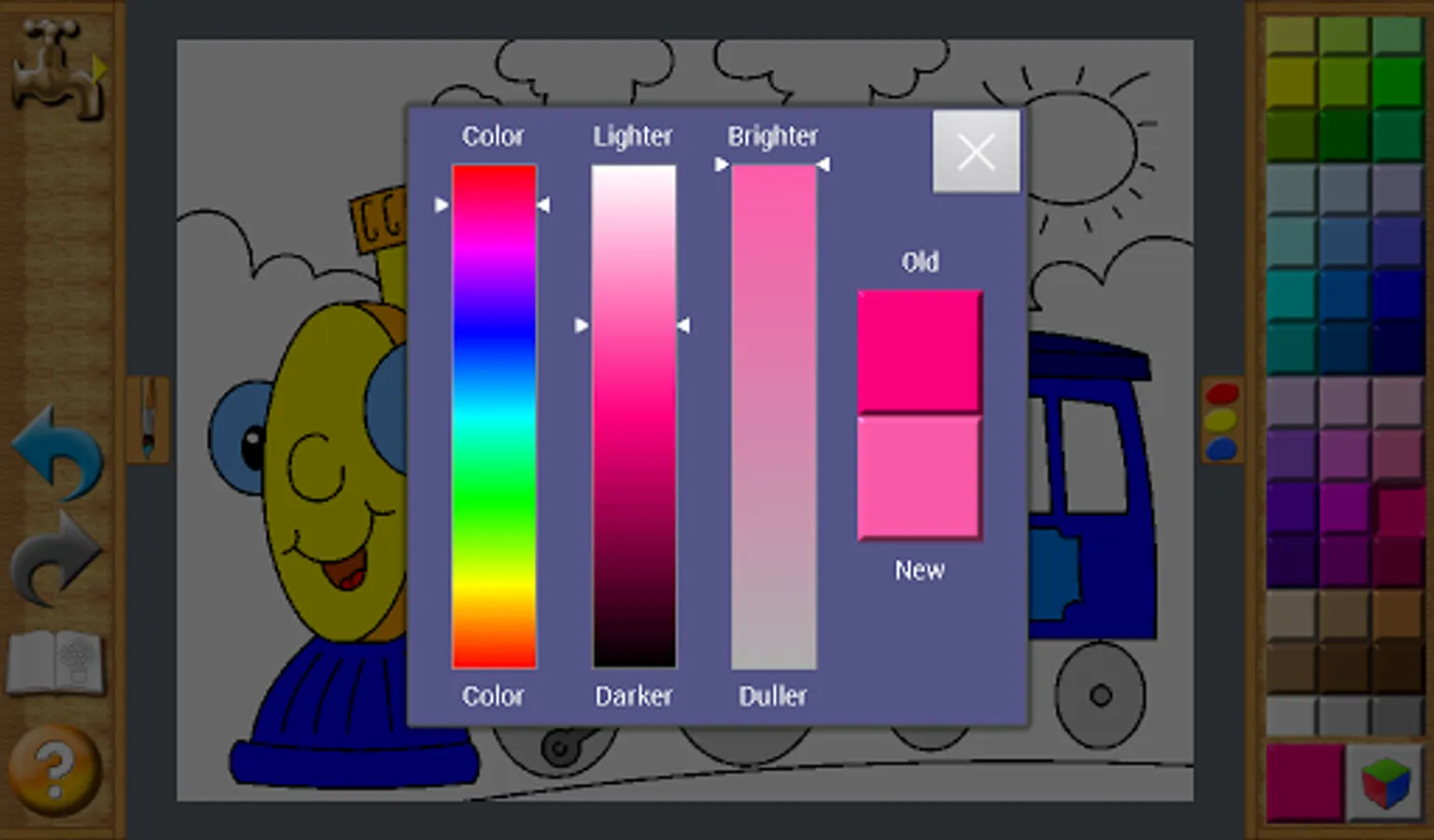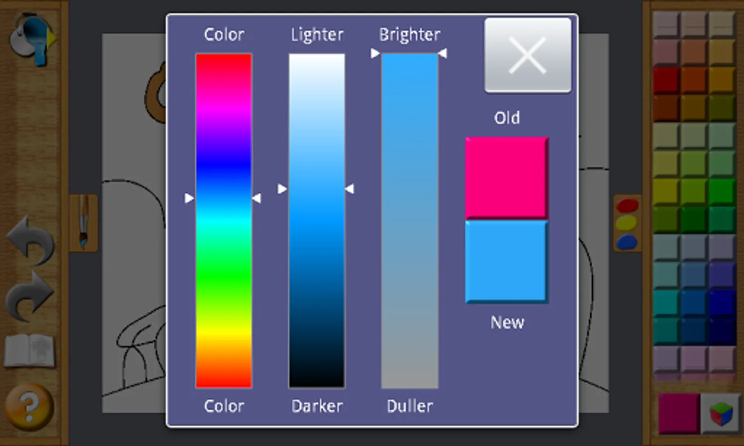 * Kid friendly COLOR PICKER - adjust color, darkness, and brightness.
