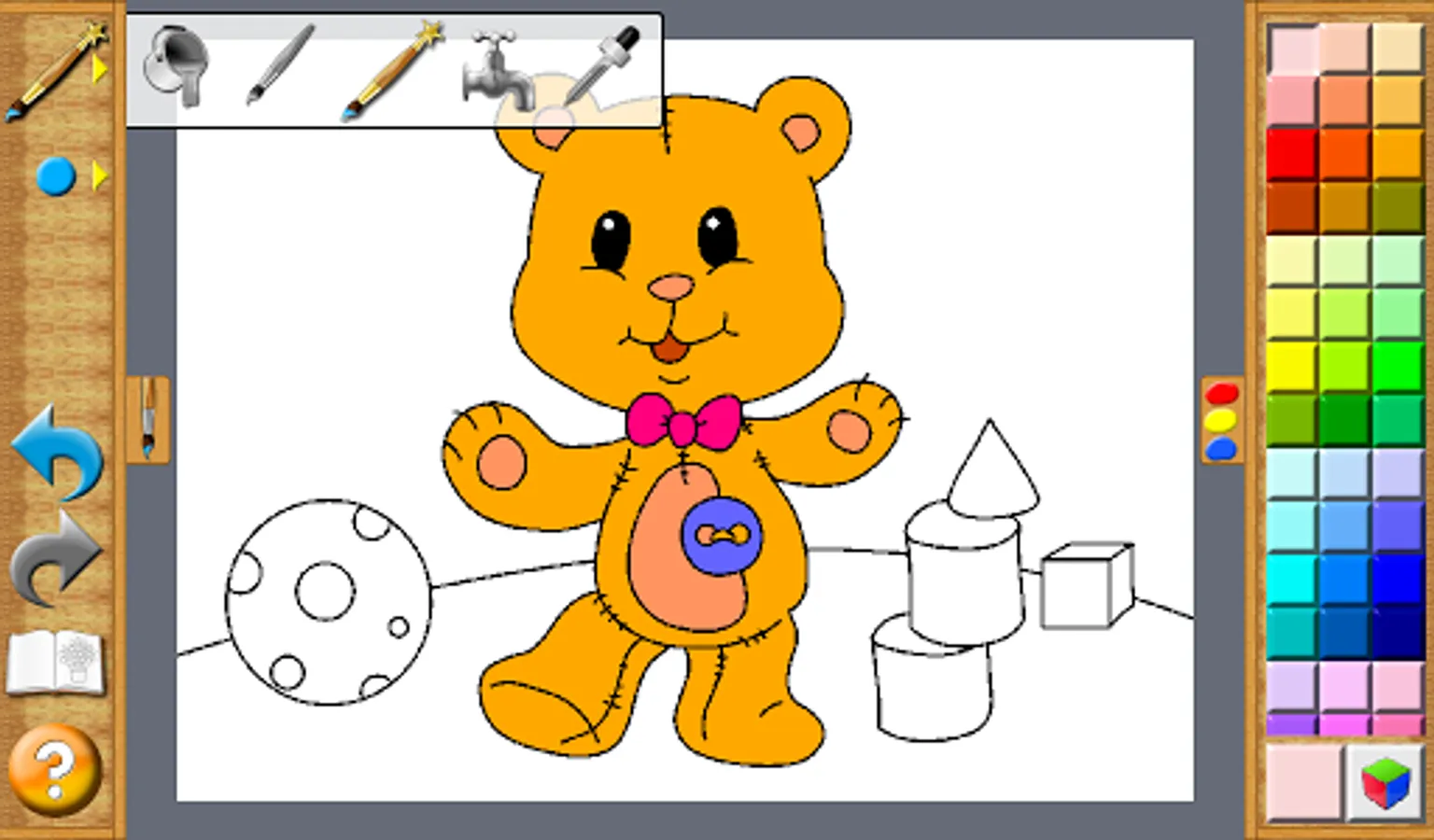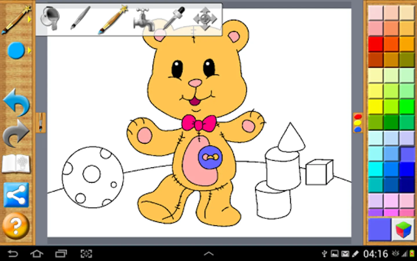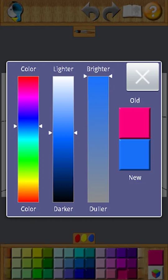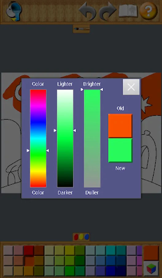 * Kid friendly COLOR PICKER - adjust color, darkness, and brightness.