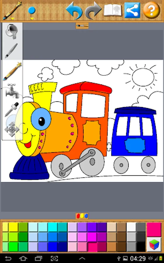 * Color using BUCKET fill, or pressure-sensitive PAINT-BRUSH.