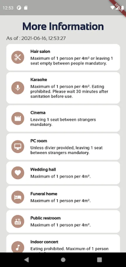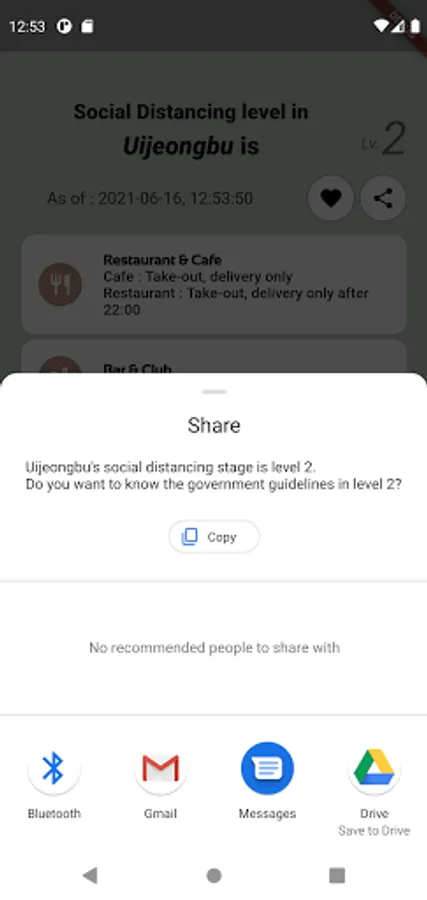 - The regulations according to the level of social distancing (restaurants, academies, gyms, etc.) are provided in English.