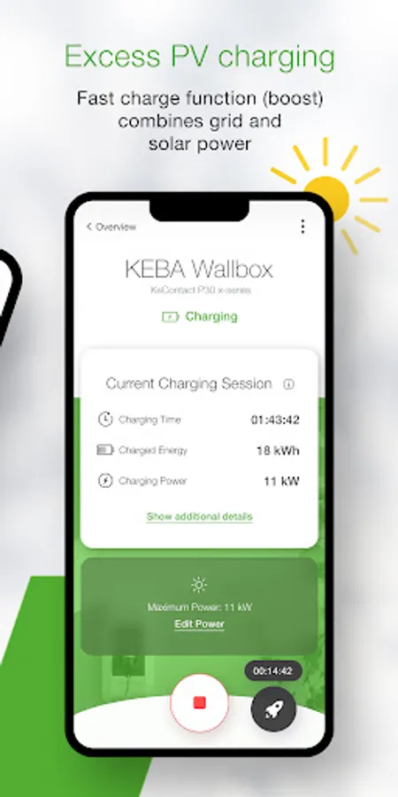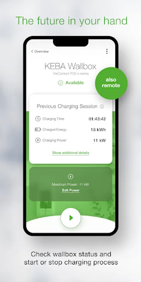 - Control your charging process by starting and stopping the current charging process – simply in one click.