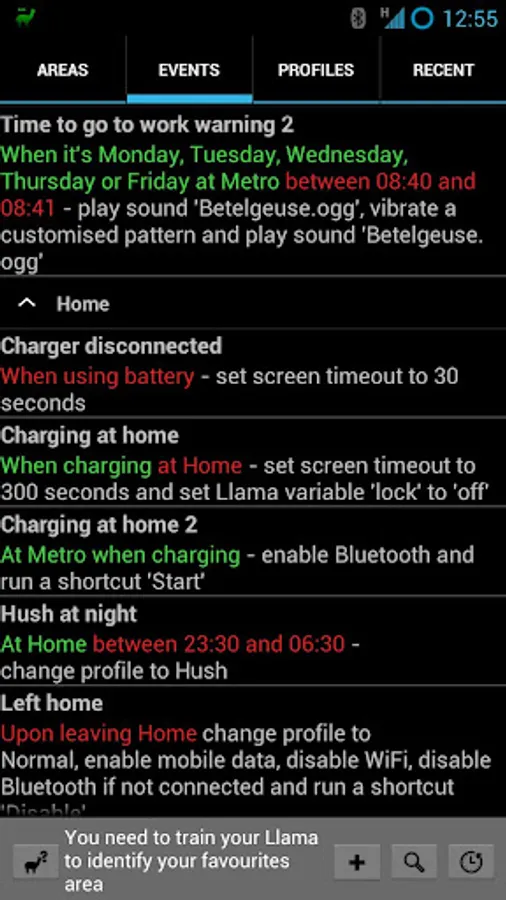 Llama uses phone masts to determine your location, so that you can change your ringer, vibrate and ringtones depending on where you are as well as the time of day. Llama provides you with sound profiles so you can quickly switch between quiet, loud, silent and normal sound settings. You can set your family, partner and children to ring even if your phone is set to silent! You can create events and home screen shortcuts to manage your sound profiles and more: