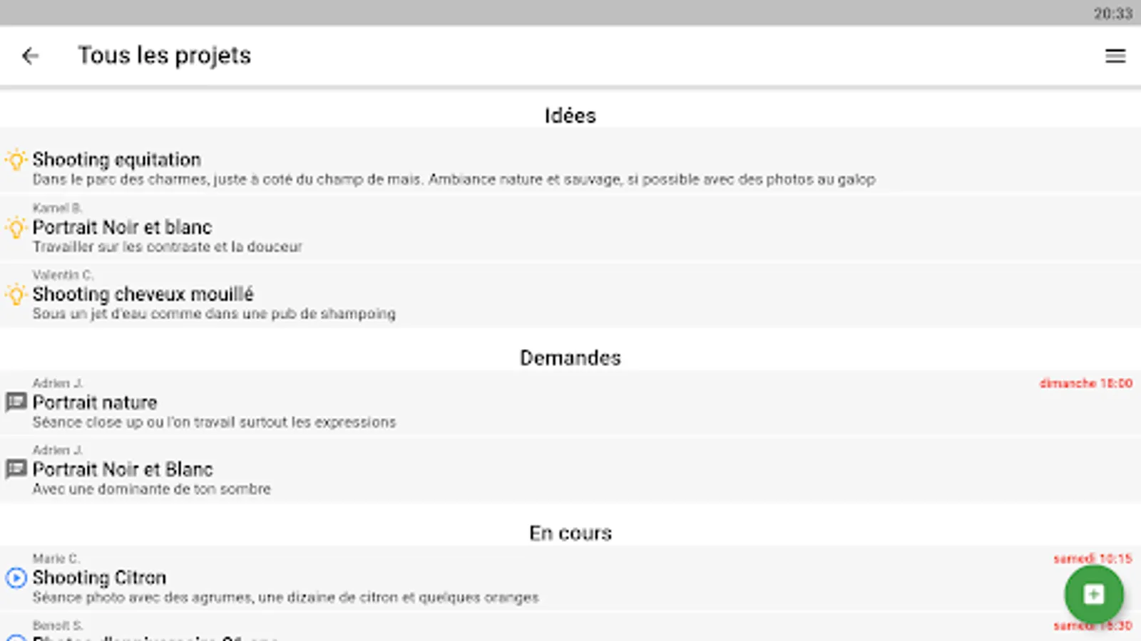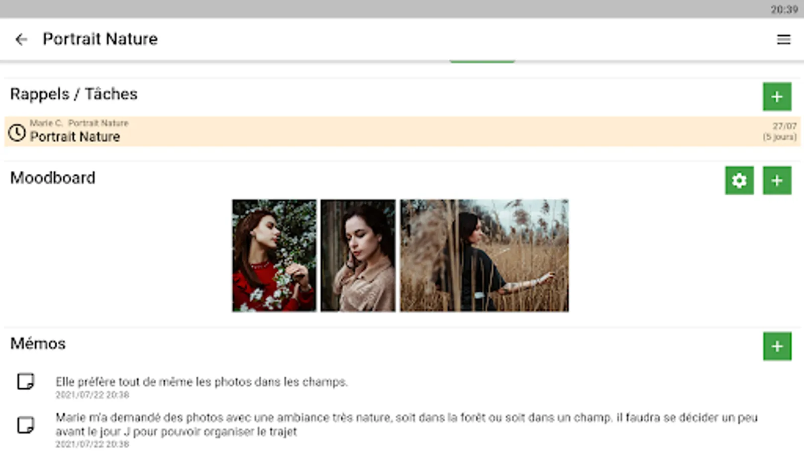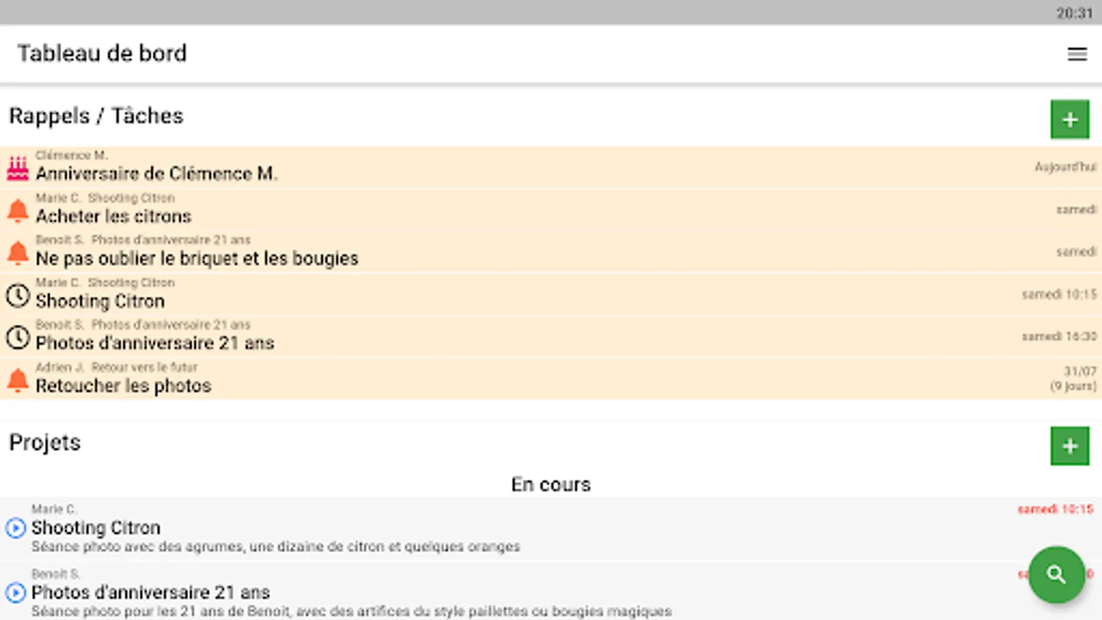 Project Memo allows you to follow your upcoming projects, write down information, your ideas or the requests you receive, the places and events associated with your various projects.