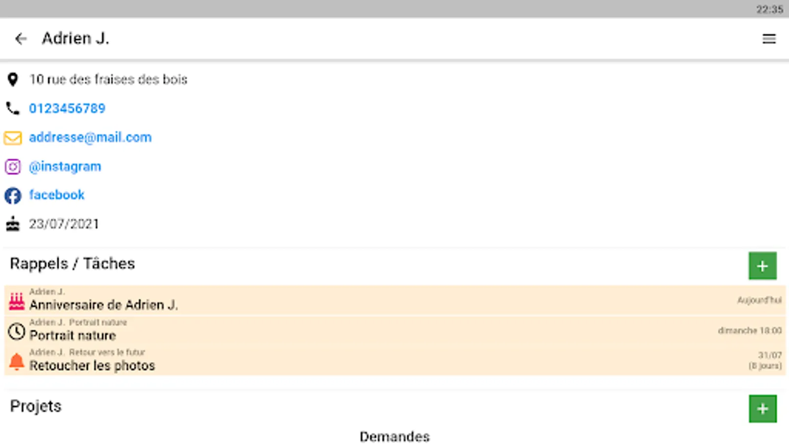Create a contact list in the app in order to note all the projects you are planning with each one.