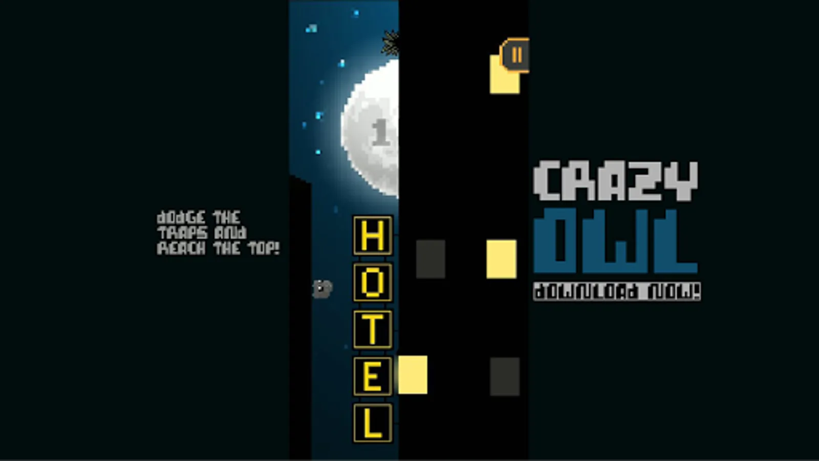 Crazy Owl is a survival game that also a hypercasual game, an arcade game, a platform game, an adventure game. Moreover, you don’t need an internet connection to play! Only 8 MB download size!