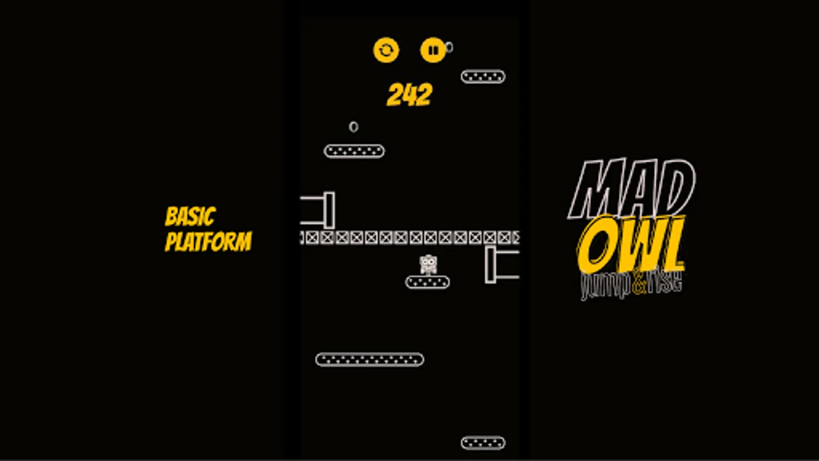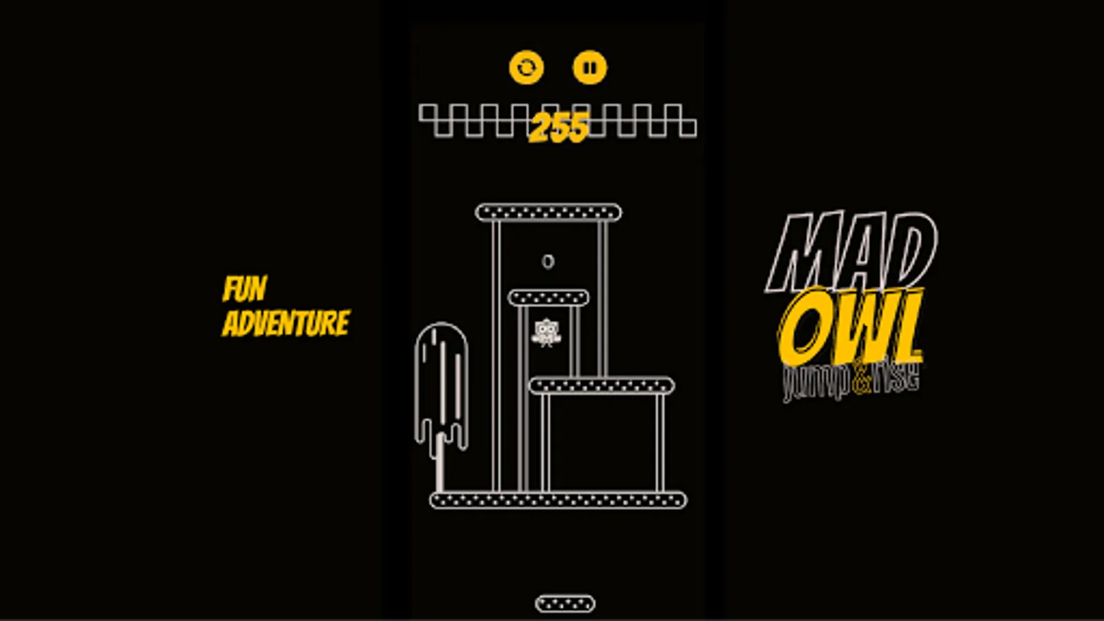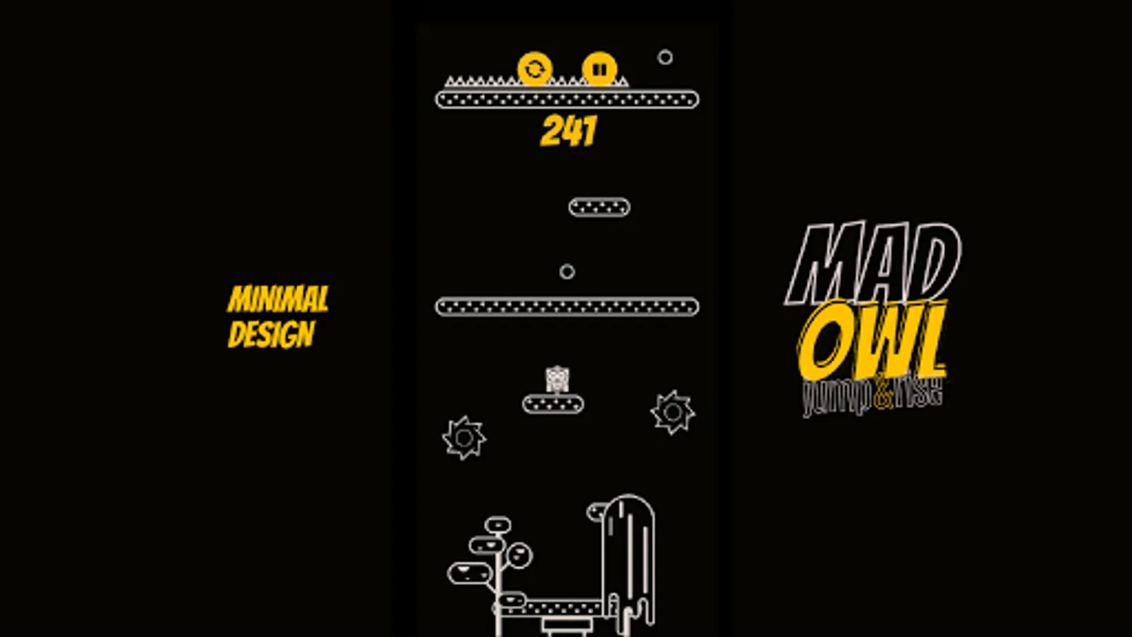 Mad Owl Jump Up and Rise is a survival game that also a hypercasual game, an arcade game, a jumping game, an adventure game. Mad Owl Jump Up and Rise is an intense game where the only thing you need to do is to get your owl as high as possible.