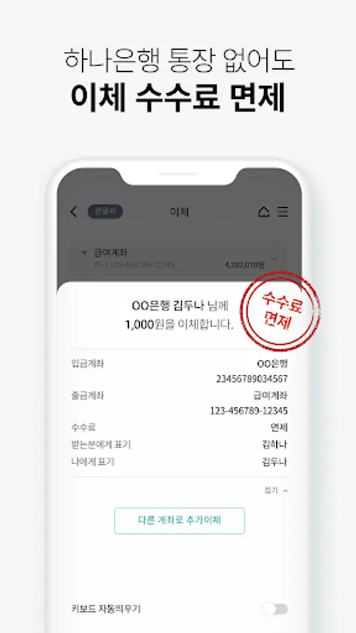 Fees are waived if you transfer from Hana One Q! Transfer from Hana Bank to Hana Bank, transfer from Hana Bank to another bank, transfer from other bank to other bank All~two!