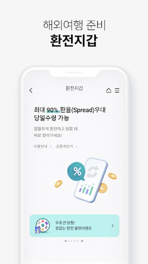 Get up to 90% preferential exchange rate (spread) and exchange money economically and store it in your exchange wallet. You can find it at the airport or at the nearest Hana Bank. If you are doing currency technology, try using the FX market where experts are gathered.