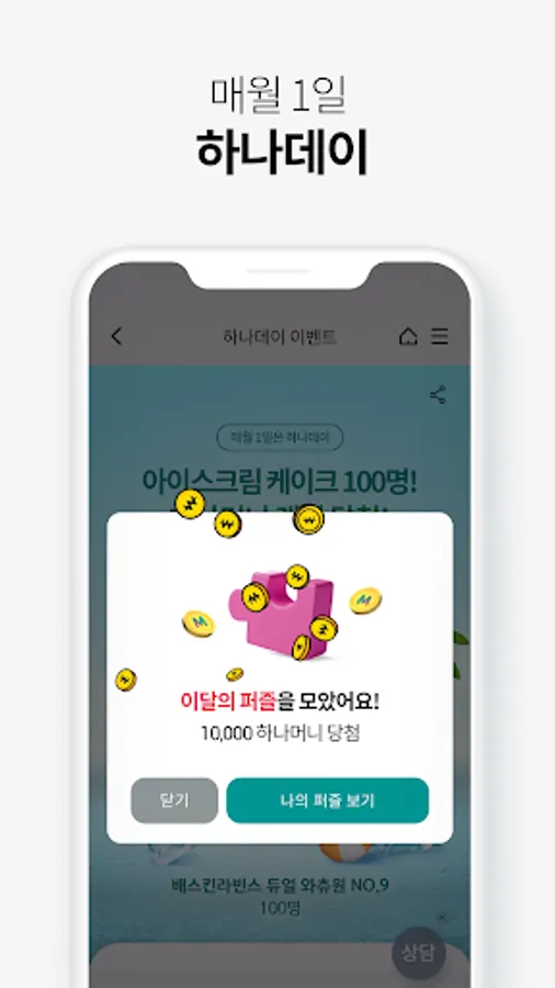 Random event from 9:00 on the 1st of every month to 10,000 to 10,000 Hana Money! 100 people will be drawn by lot every month and given gifts. Anyone can easily participate!