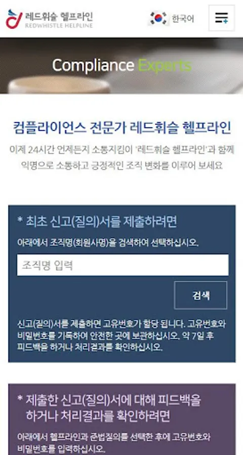 The "Hana Bank Helpline" allows you to conveniently and anonymously report helplines anonymously and in real time, anytime, anywhere. You can also check the progress and processing of reports and inquiries, and follow-up reports.