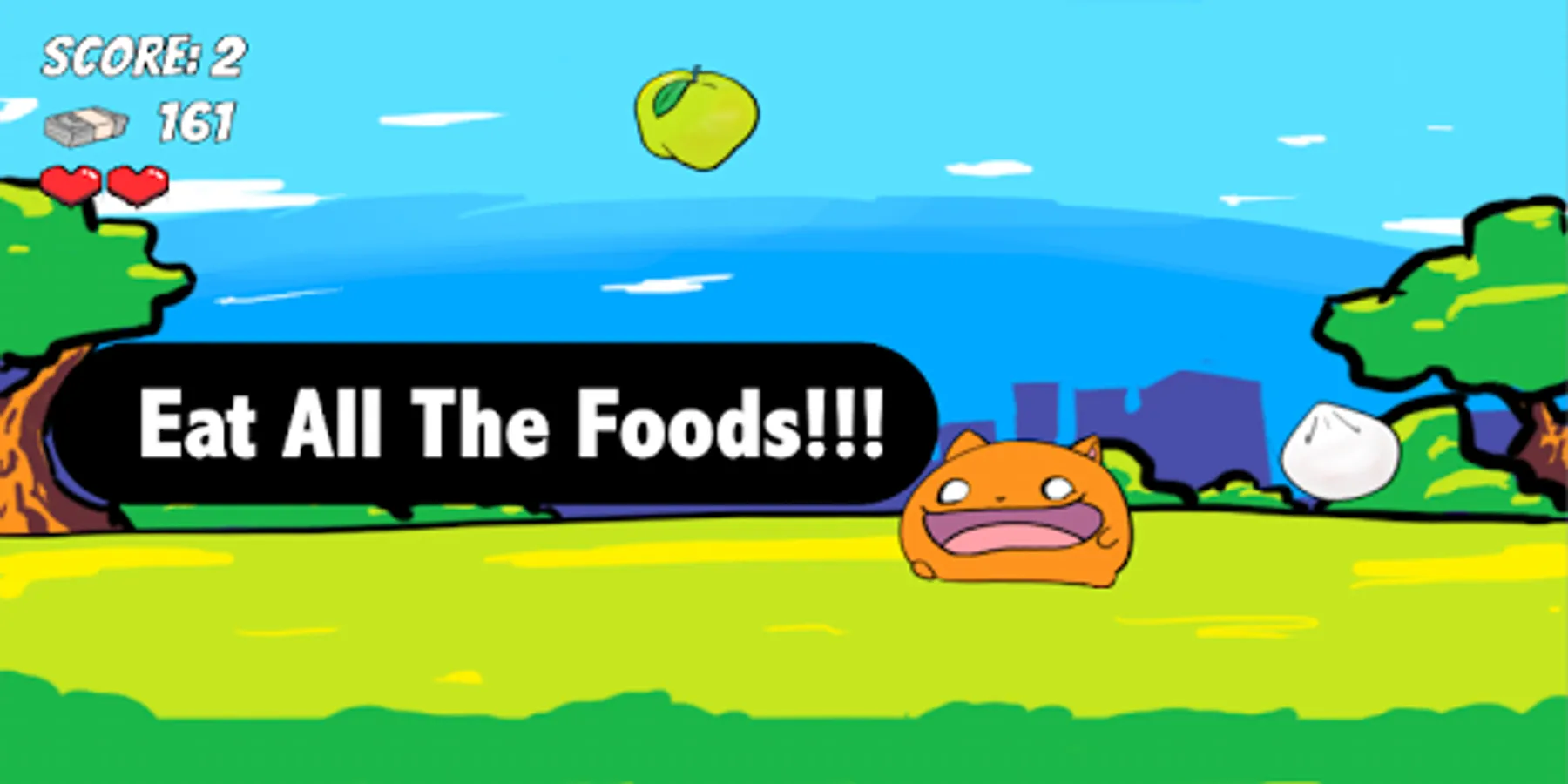 Food and poop falls from the sky. Catch all the foods and don't let them fall to ground. Be careful not to catch poop. Let poop fall to ground and watch them become cash which you can use to buy various skins.