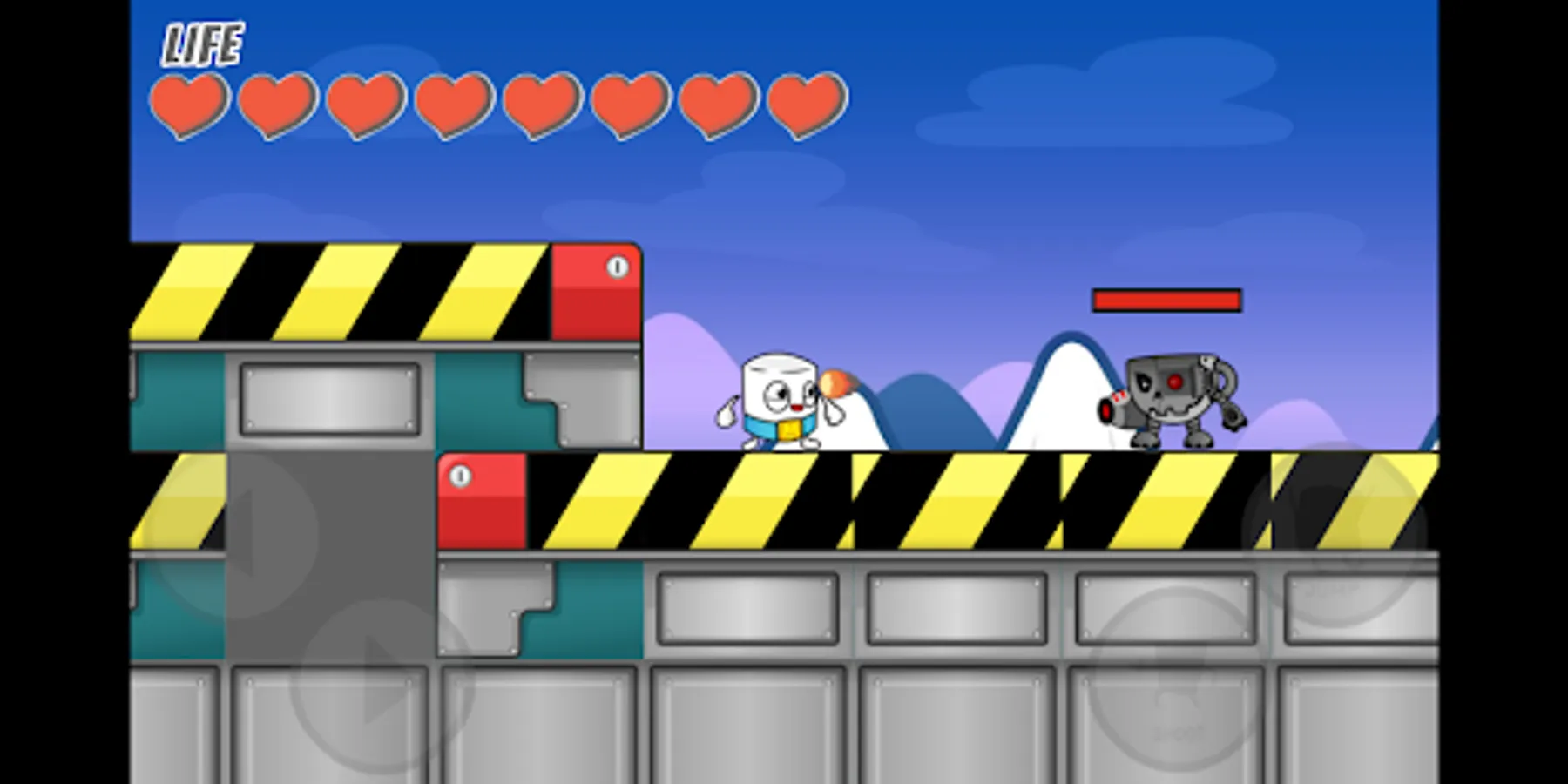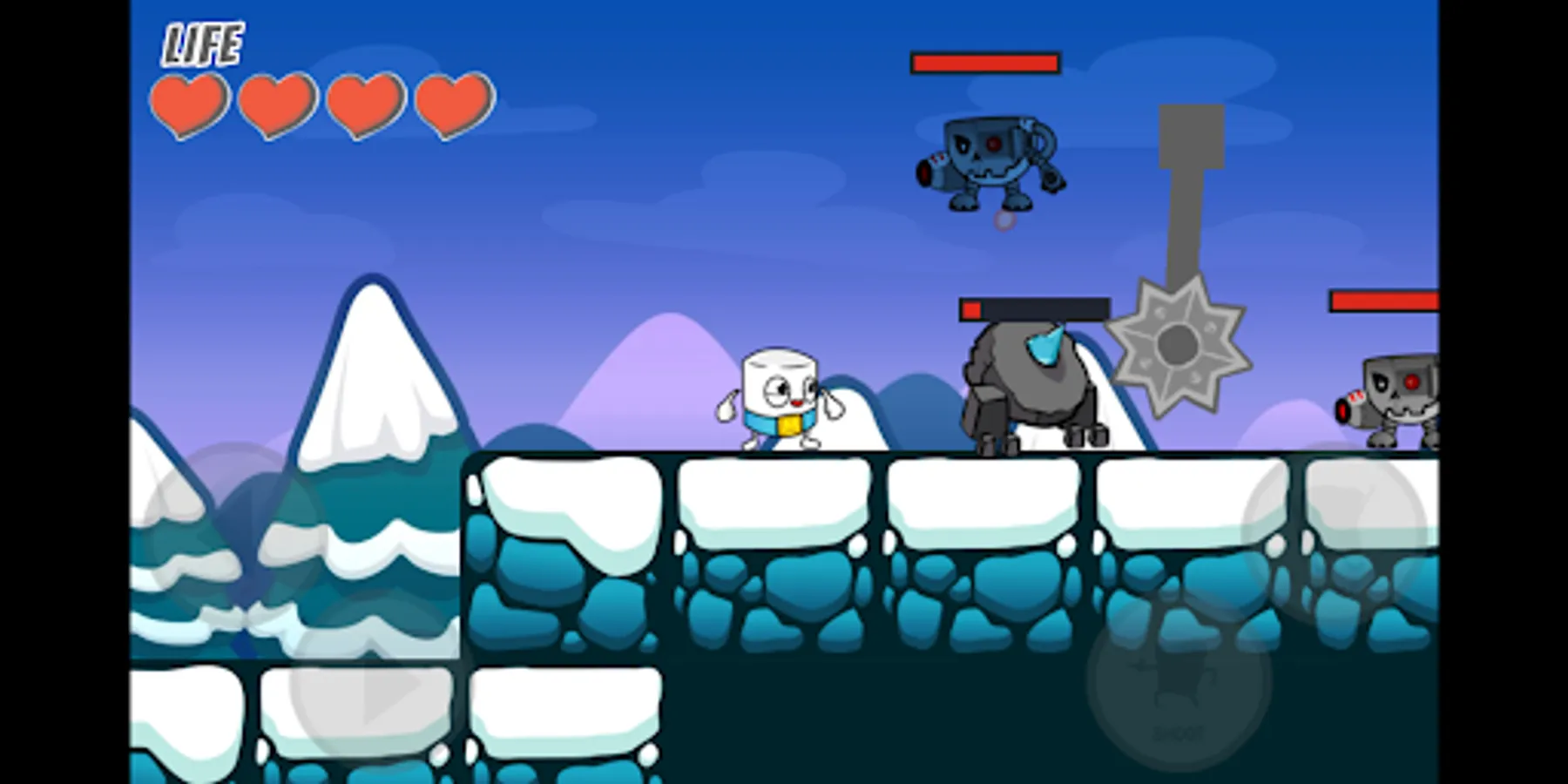 As Mr. Marshmallow (our main puffy hero) you can run, jump, and even fly through challenging levels while firing endless marshmallows to stop the evil Hot Cocoa and his mind-controlled henchmen! Upgrade skills, unlock new heroes, and enlist drones to help Mr. Marshmallow in this entertaining adventure from the super creative mind of a 7-year-old boy.