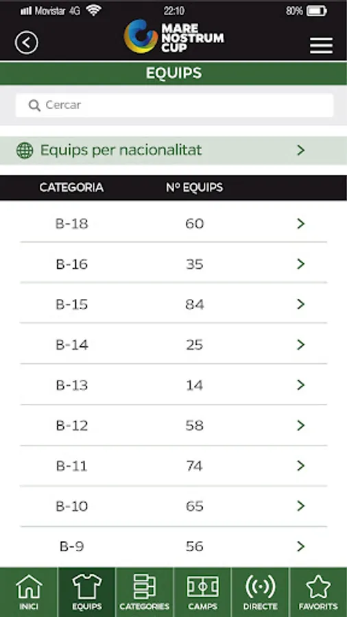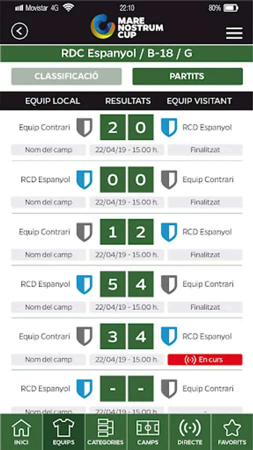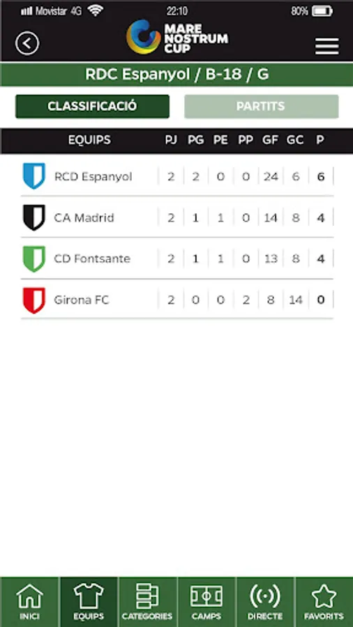 In addition, you can add your team as a favorite and have direct access to all its information during the tournament.