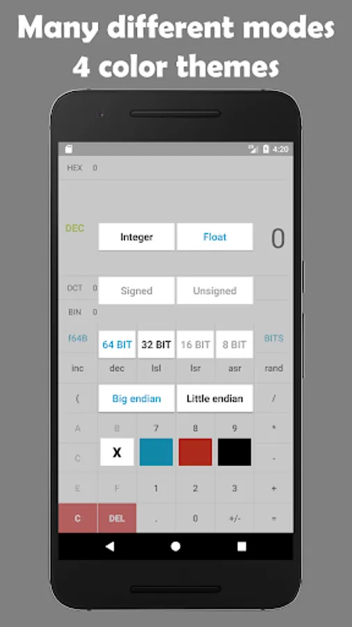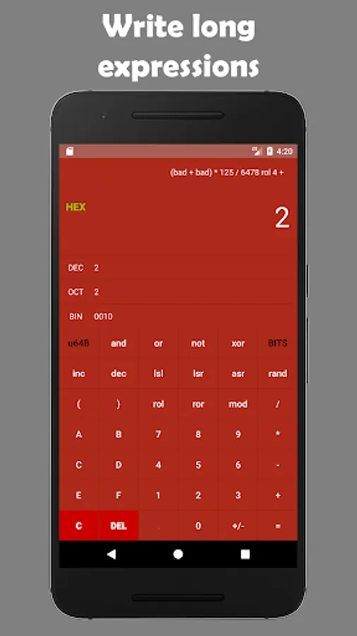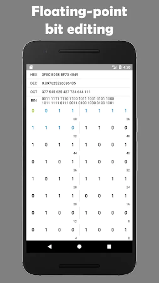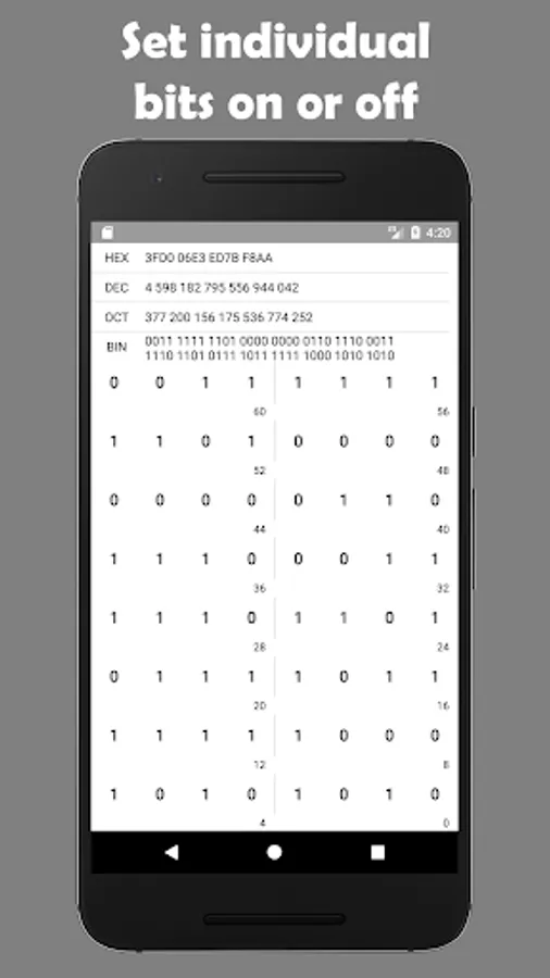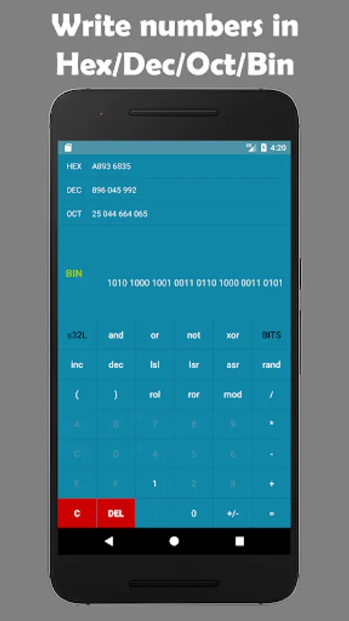 Display shows numbers in binary, hexadecimal, octal and decimal.
