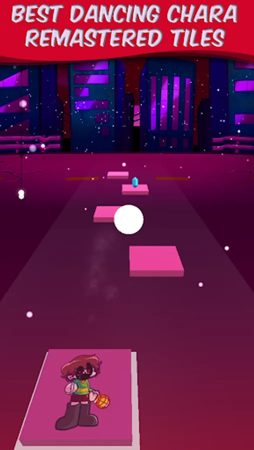 The Chara FNF Dancing Ball mod for Tiles Hop features a variety of new songs and characters from the Friday Night Funkin' universe. Players can choose from characters like Boyfriend, Girlfriend, Daddy Dearest, and more as they hop their way through various levels.