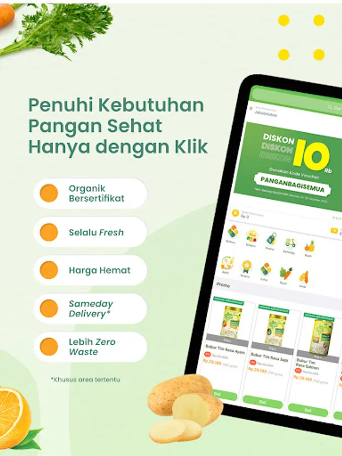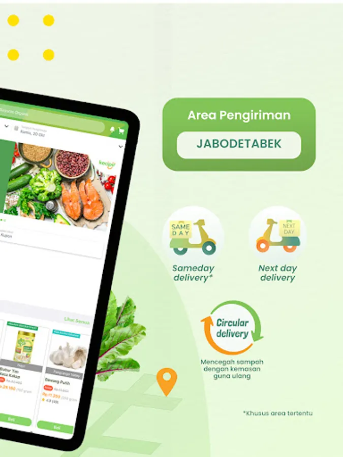 Get organic vegetables and pesticide and agro-chemical free food at affordable prices at Kecipir. There are > 1000 curated organic & healthy products available: vegetables, fruit, chicken & eggs, fish & seafood, herbs & spices, herbs, tubers, groceries, various ready-to-eat healthy foods and drinks.