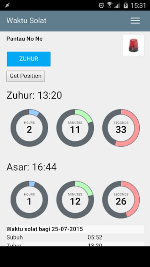 - tentukan waktu solat dari lokasi anda, menggunakan GPS.