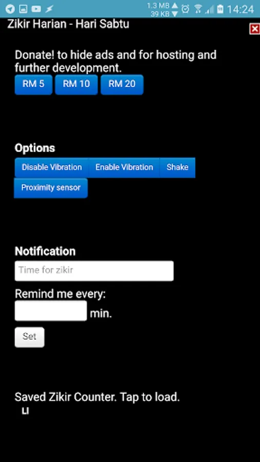 Zikir Harian will change and display the zikir of the day, comes with a tasbih/counter, and shake / volume up / tap / proximity sensor to increase zikir count.