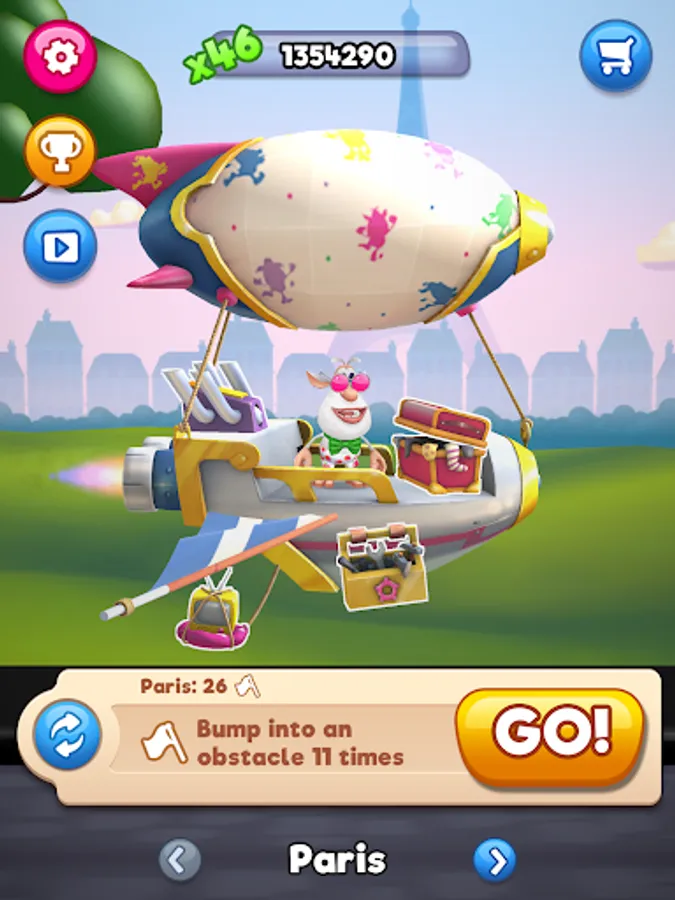 Rush to collect food and power-ups around the globe with Booba. There are many cool outfits to choose from for this occasion. The flying machine itself has many features and customization options. Help Booba to run through the modern cities dodging various obstacles. Visit Paris, New York, Berlin and many other metropolises.
