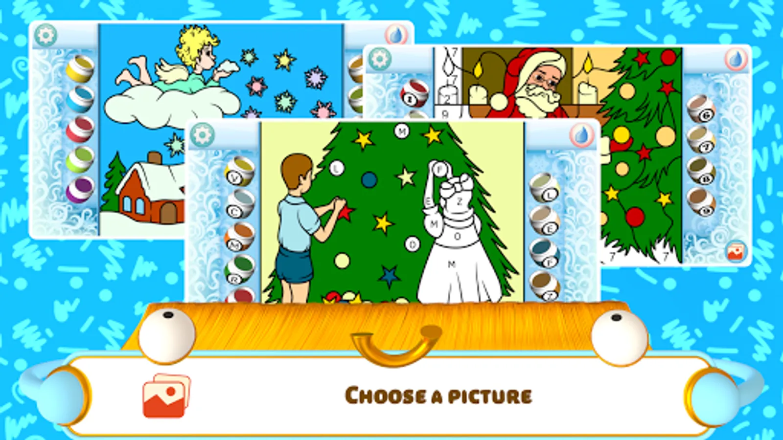 Christmas is the most important holiday for most kids all over the world. With huge excitement, boys and girls decorate the Christmas tree, make sweets, deck out the house and look forward to their presents. These coloring pages depict your favorite Christmas characters and the main symbols of the festive season. The coloring process gives every kid the feeling of the Christmas holidays drawing near.