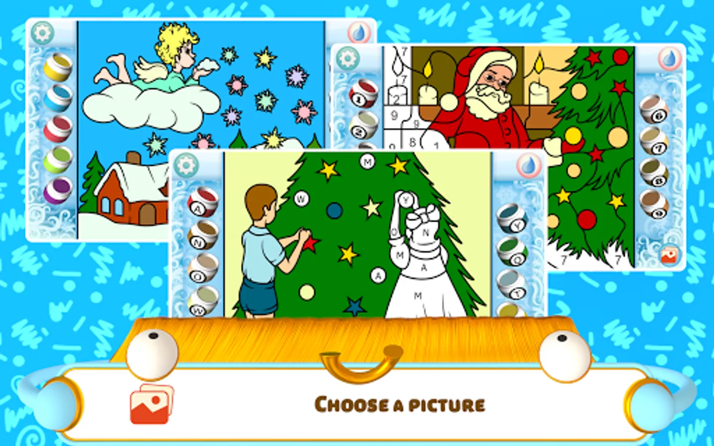 Boys and girls of all ages love to color. The simple coloring mode is suitable for the smallest of children, including those of kindergarten and preschool age. These include simple and recognizable images that are easy to color. If the child selects the wrong shape, then they will be prompted with the correct number. Therefore, the picture will always be colored correctly, and the child will quickly memorize the numbers. Children can choose to color by geometrical figures and pictograms in addition to numbers. A child can easily distinguish a square from a circle, diamond, and triangle.