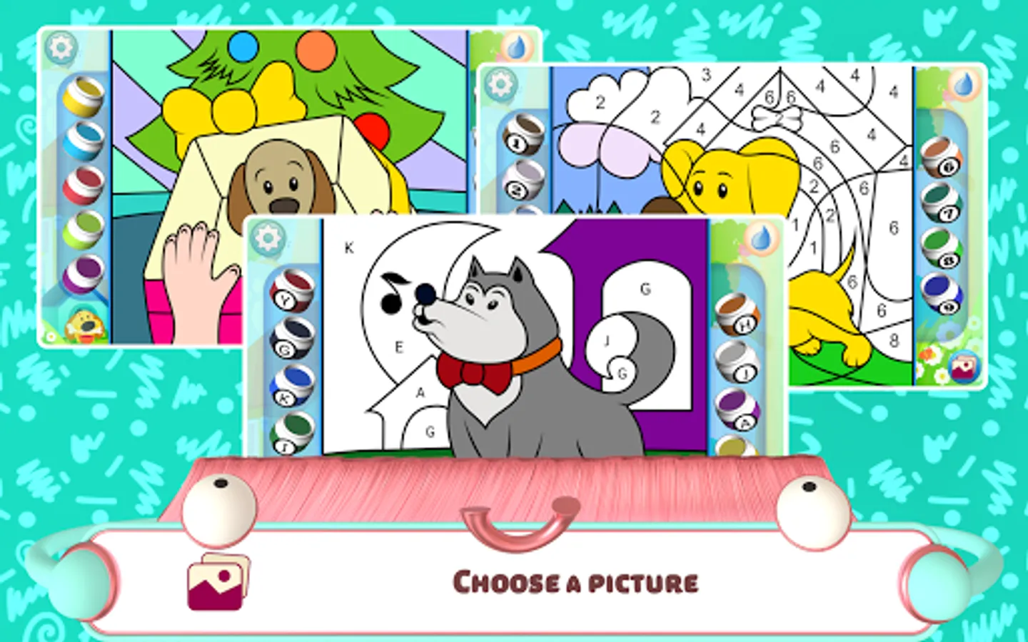 Boys and girls of all ages love to color. The simple coloring mode is suitable for the smallest of children, including those of kindergarten and preschool age. These include simple and recognizable images that are easy to color. If the child selects the wrong shape, then they will be prompted with the correct number. Therefore, the picture will always be colored correctly, and the child will quickly memorize the numbers. Children can choose to color by geometrical figures and pictograms in addition to numbers. A child can easily distinguish a square from a circle, diamond, and triangle.