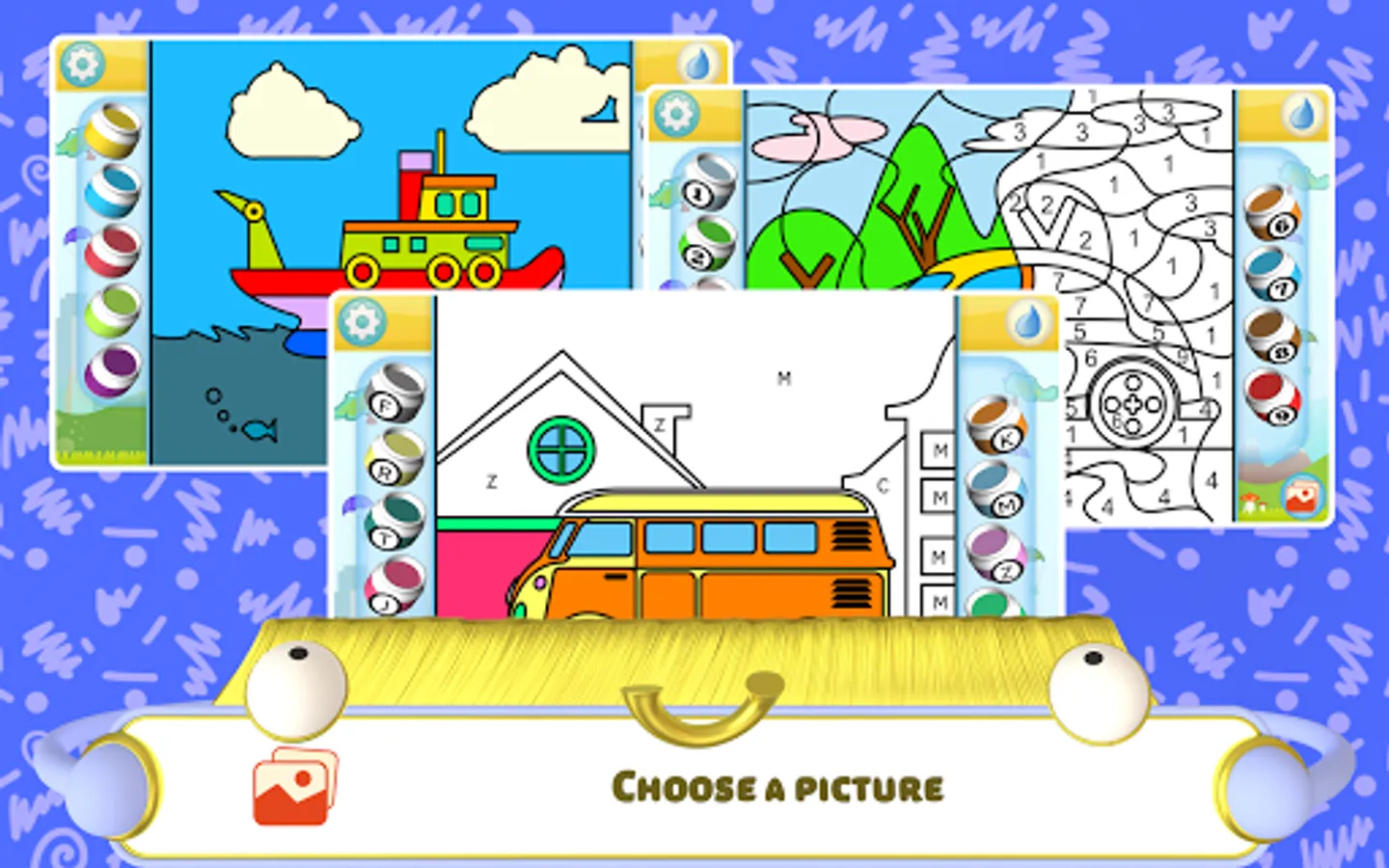 Boys and girls of all ages love to color. The simple coloring mode is suitable for the smallest of children, including those of kindergarten and preschool age. These include simple and recognizable images that are easy to color. If the child selects the wrong shape, then they will be prompted with the correct number. Therefore, the picture will always be colored correctly, and the child will quickly memorize the numbers. Children can choose to color by geometrical figures and pictograms in addition to numbers. A child can easily distinguish a square from a circle, diamond, and triangle.