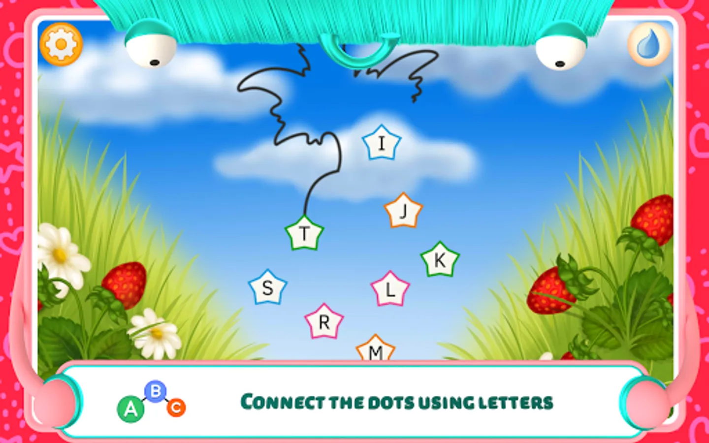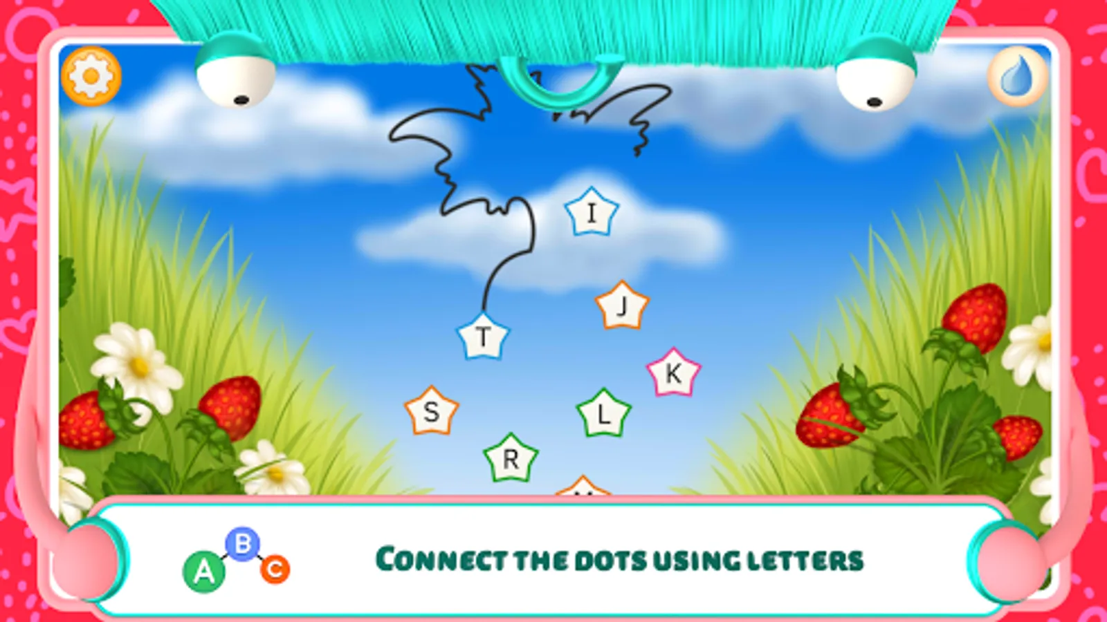 Those studying the alphabet can choose to connect points by letters. It is important that children know letters as early as possible, since it is essential for learning to read and write. But knowing the order of letters in the alphabet is also very important! This can be achieved by connecting circles with letters in the right sequence.