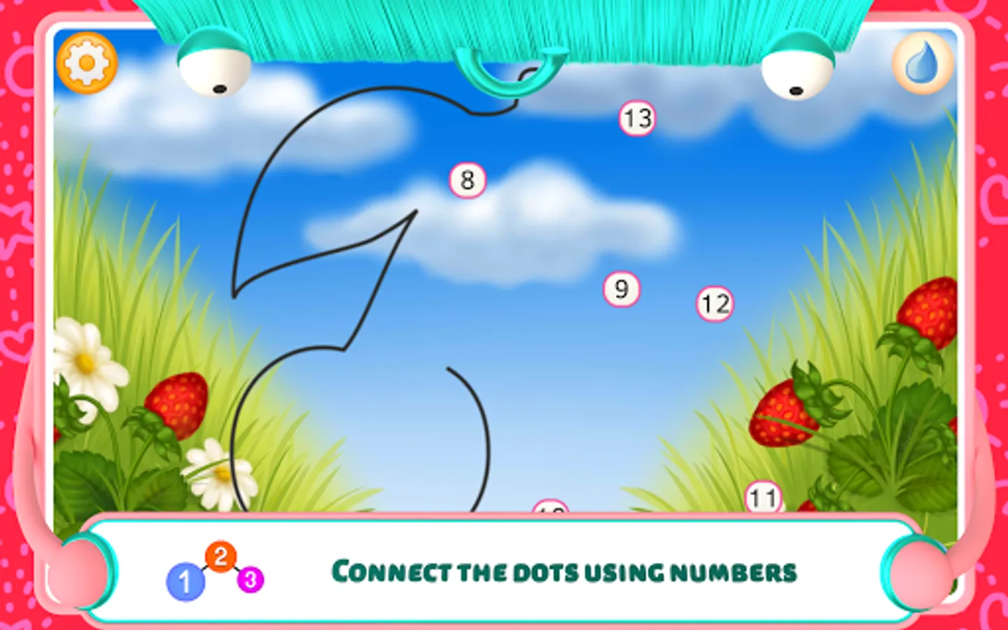 Connecting by numbers will help to easily memorize the order of numbers and learn to count. To do this, you need to consecutively connect circles with numbers starting from 1. As you connect circles in the right order, the silhouette of a hidden picture will become more and more visible. If three points are chosen incorrectly, a tip will pop up. Once all the points are fully connected, the picture will become fully visible and you’ll be able to color it.