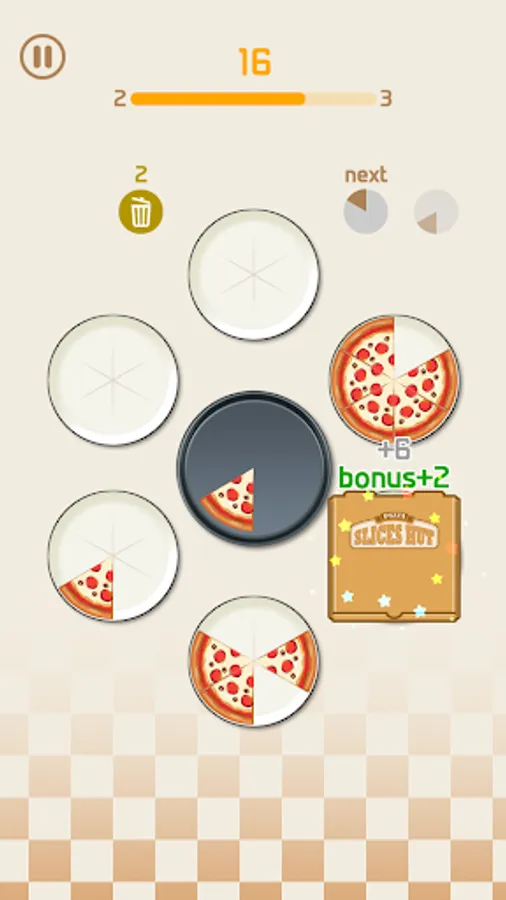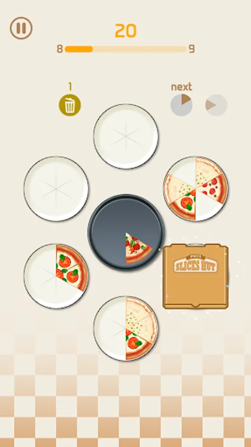 Tap in one of the outer circles to place the slice. Complete a circle to blow it up and always keep an eye on the waiting queue.