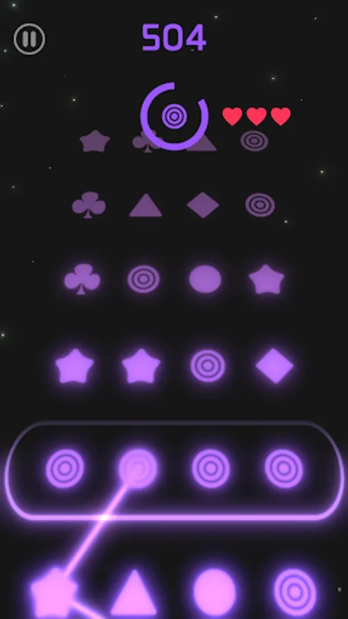 If you don’t manage to tap the next shape before the time ends also makes you lose a heart.