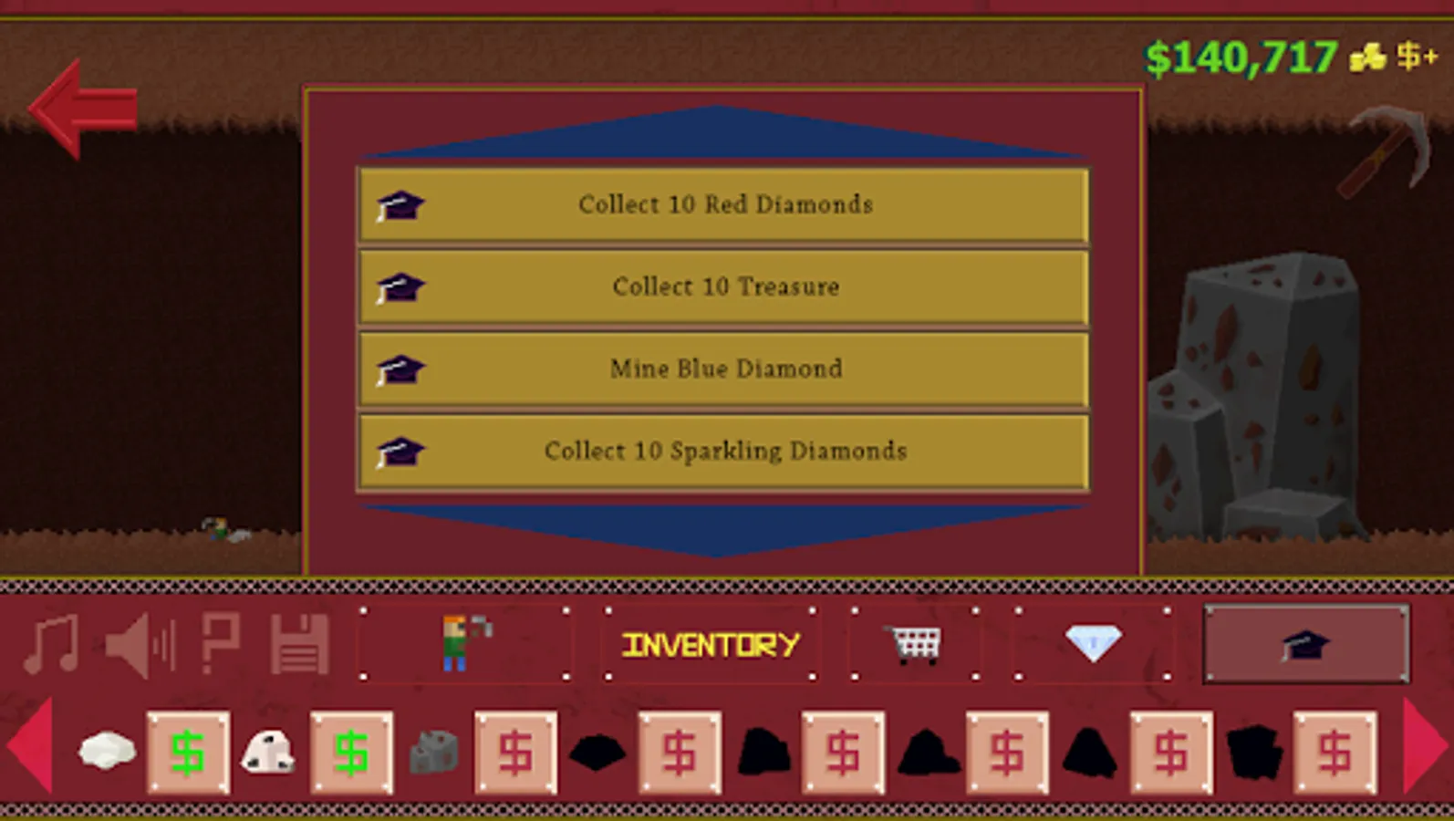 Mine your way through rocks with a wider variety of upgrades, equipment and collectables to begin your journey and idle your way to the top! Sell precious gems and rare collectables to the market to stack up your coins. Complete the game by achieving each task and earning trophies!