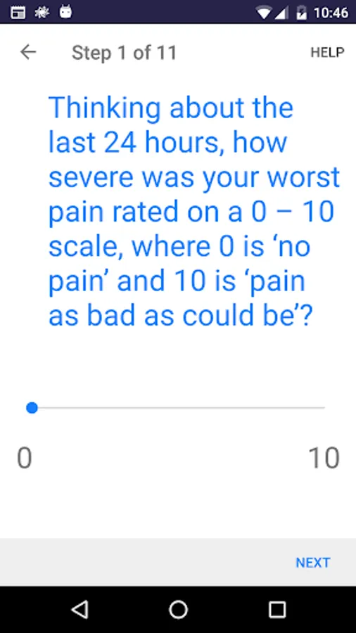 The Keele Pain Recorder (KPR) app was developed by Keele University’s Primary Care Sciences department (https://www.keele.ac.uk/pchs/). It has undergone clinical trials and been subject to scientific evaluation. It records your level of pain, how this interferes with your life, mood, and sleep on a daily or weekly basis. It records how medication is helping your condition, or if you experience side effects. This can be shared with your doctor to help treat your condition via Email or through the app itself.