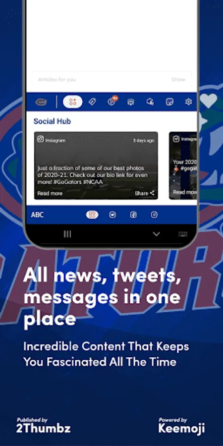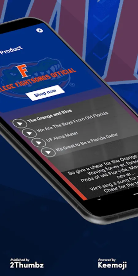 Florida Gators Keyboard is an officially licensed app for enjoying the full Gator Nation experience. This app is owned and published by 2Thumbz, a leading mobile app development company and a trusted collegiate publisher since 2003.