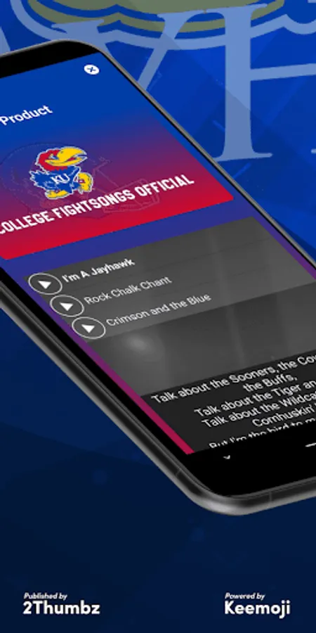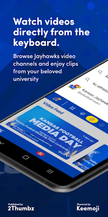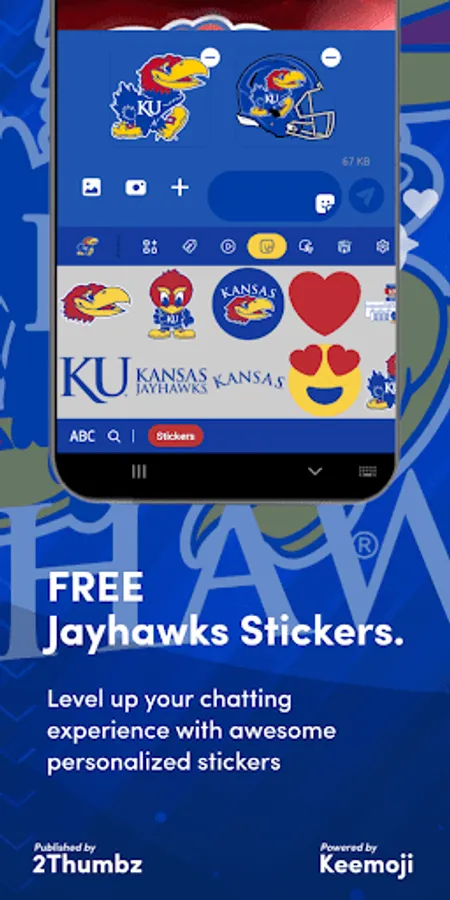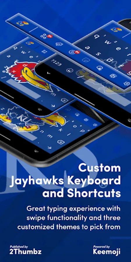 Kansas Jayhawks Keyboard is an officially licensed app for enjoying the full Kansas University Athletics experience. This app is owned and published by 2Thumbz, a leading mobile app development company and a trusted collegiate publisher since 2003.
