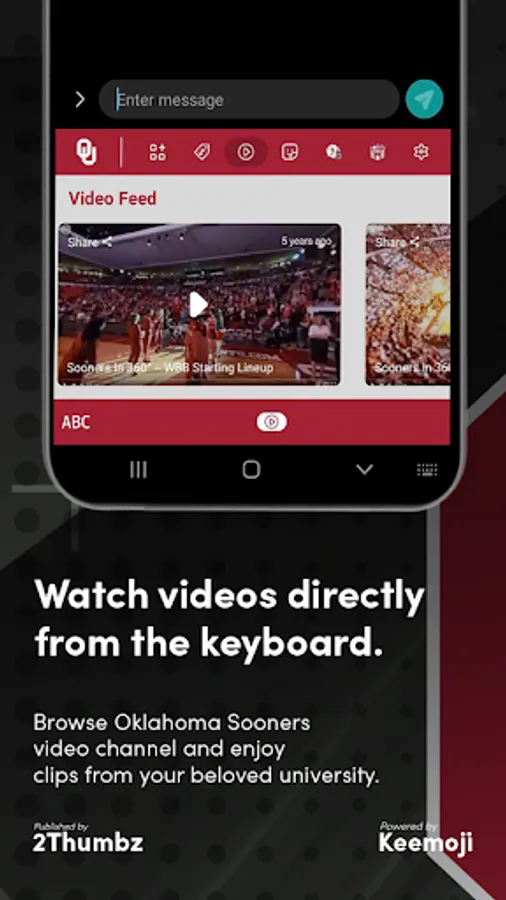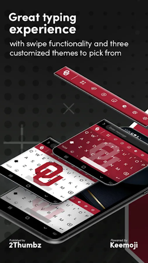 Oklahoma Sooners Keyboard is the officially licensed fan app for enjoying the full OU Athletics experience. This app is owned and published by 2Thumbz, a leading mobile app development company and a trusted collegiate publisher since 2003.