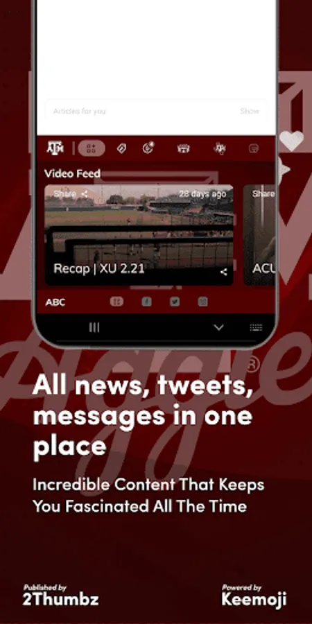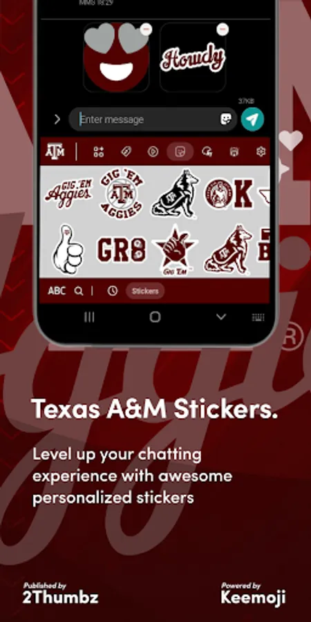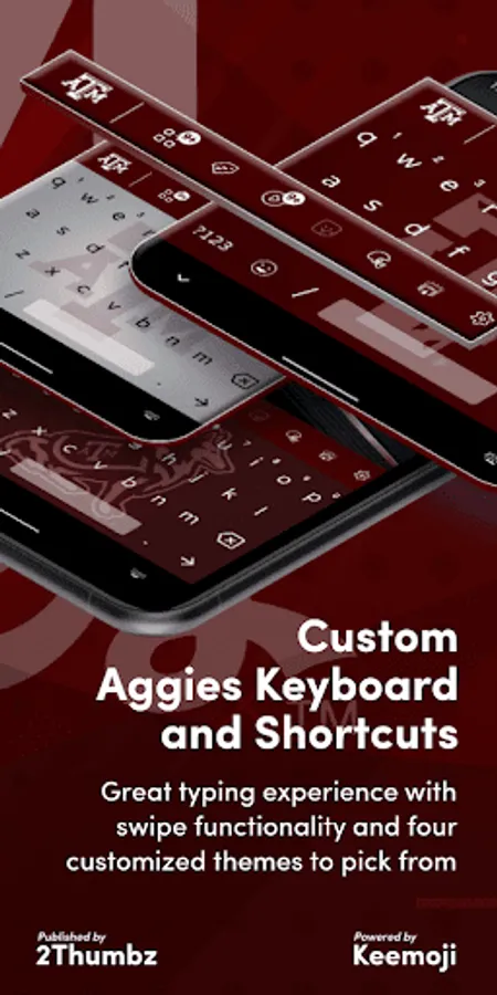TEXAS A&M Official Keyboard is the officially licensed fan app for enjoying the full A&M experience. This app is owned and published by 2Thumbz, a leading mobile app development company and a trusted collegiate publisher since 2003.