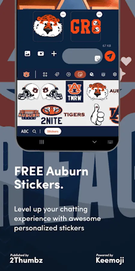 Auburn Tigers Keyboard is the officially licensed fan app for enjoying the full Auburn Athletics experience. This app is owned and published by 2Thumbz, a leading mobile app development company and a trusted collegiate publisher since 2003.
