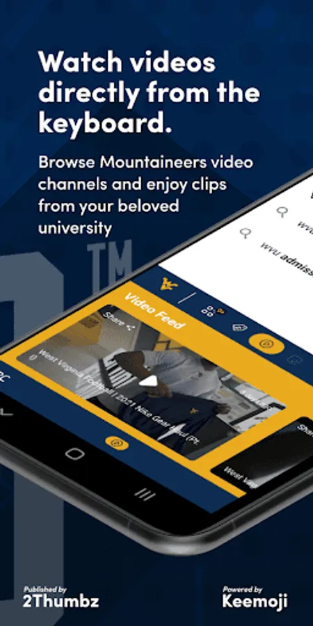 West Virginia University Keyboard is the officially licensed fan app for enjoying the full Mountaineer experience. This app is owned and published by 2Thumbz, a leading mobile app development company and a trusted collegiate publisher since 2003.