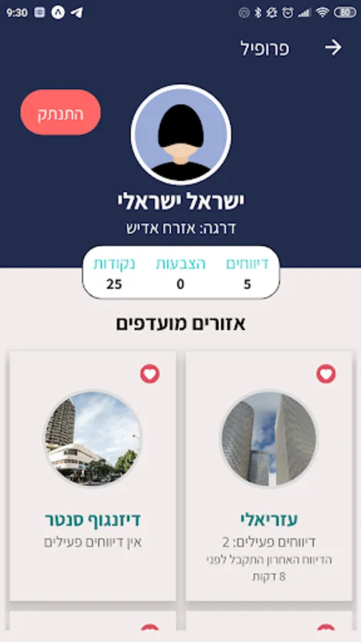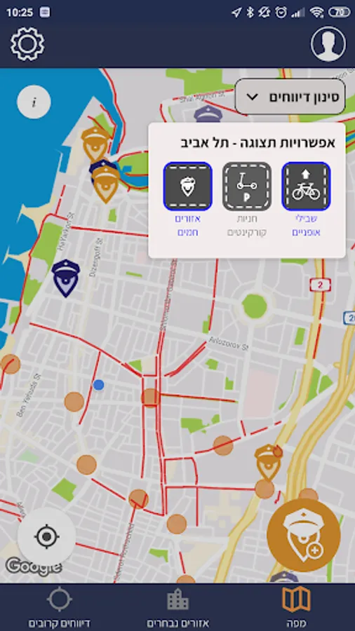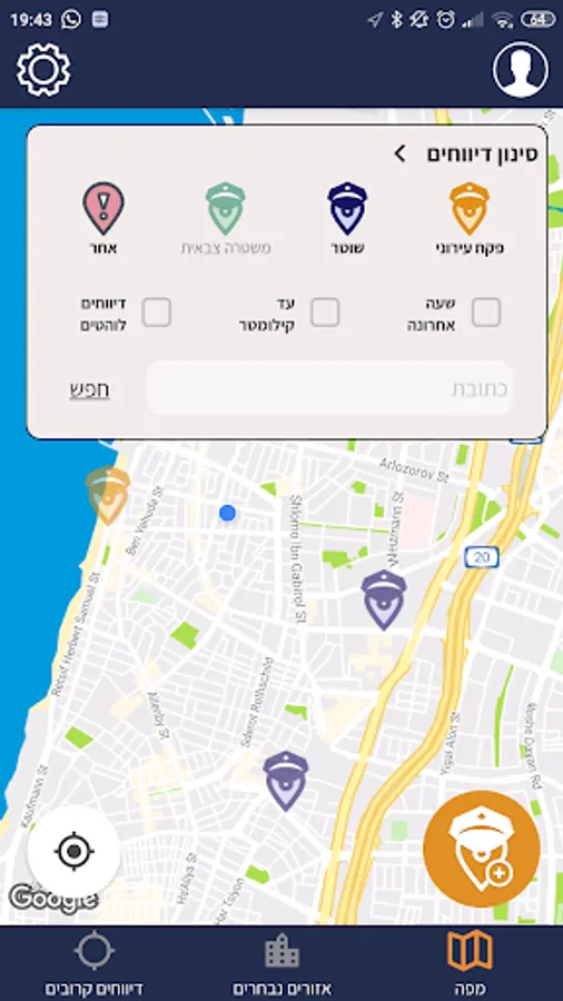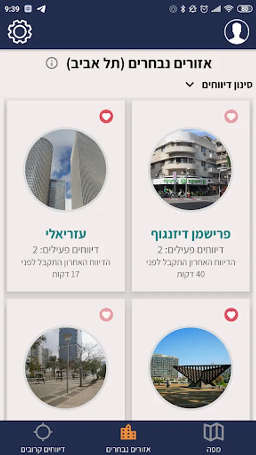 • לצפות בדיווחים בחתך אזורים נבחרים (כרגע תל אביב, בהמשך יתווספו עוד ערים)