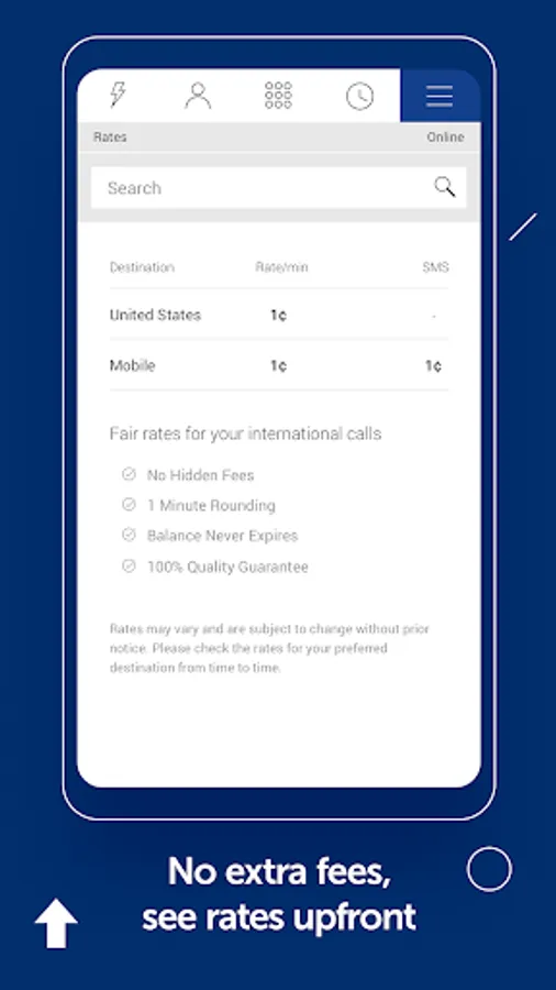 *Check what’s the rate/min for the destination you want to call in our Rates menu.