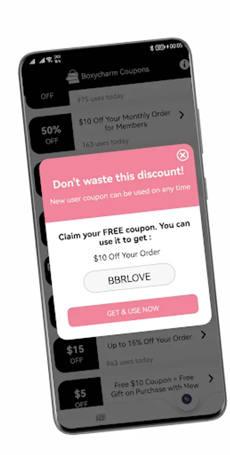 Boxycharm Coupon Code - CA with which you can find many coupon codes for subscribers and special offers, which makes this app easy to use.