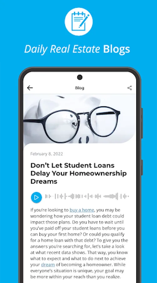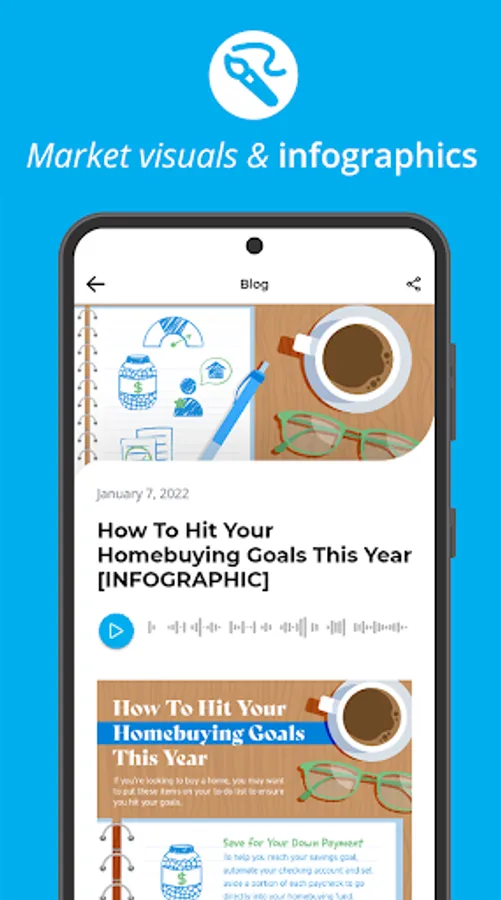 Instantly share daily blogs and weekly videos directly from your phone to educate your sphere and stand out as the market expert.