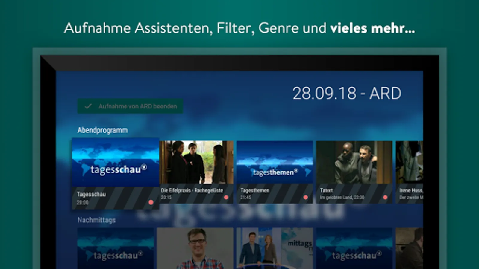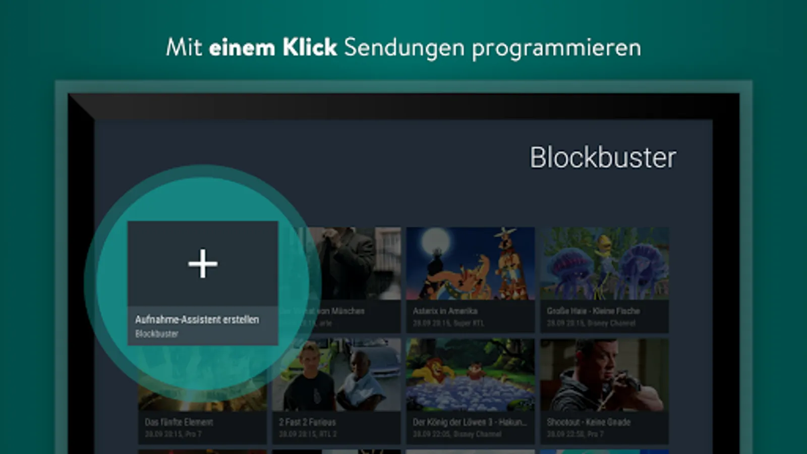With your personal cloud recorder, you record broadcasts of any German TV station around the clock - without additional hardware! Just take control with your TV, smartphone or tablet. The recording takes place in the cloud!