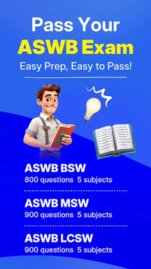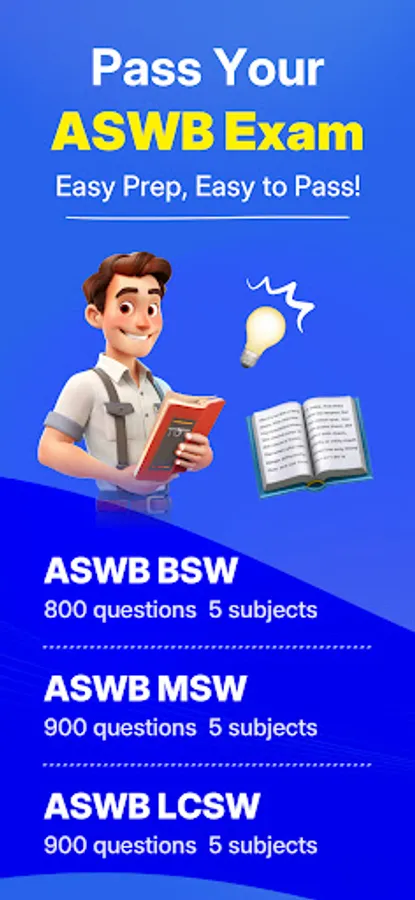 Help you prepare for the ASWB certification exam and pass it on your first attempt at the actual exam! Use the mobile app ASWB Exam Test Prep 2026 developed by our exam experts to help prepare for the exam and boost your confidence.